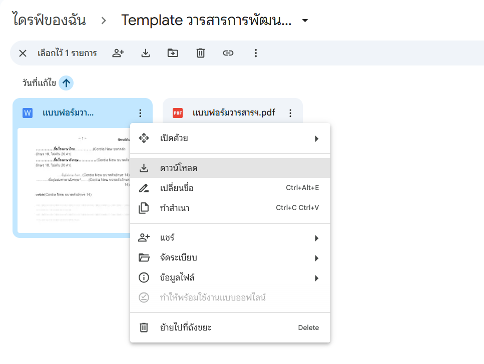 ดาวน์โหลดแบบฟอร์มบทความ